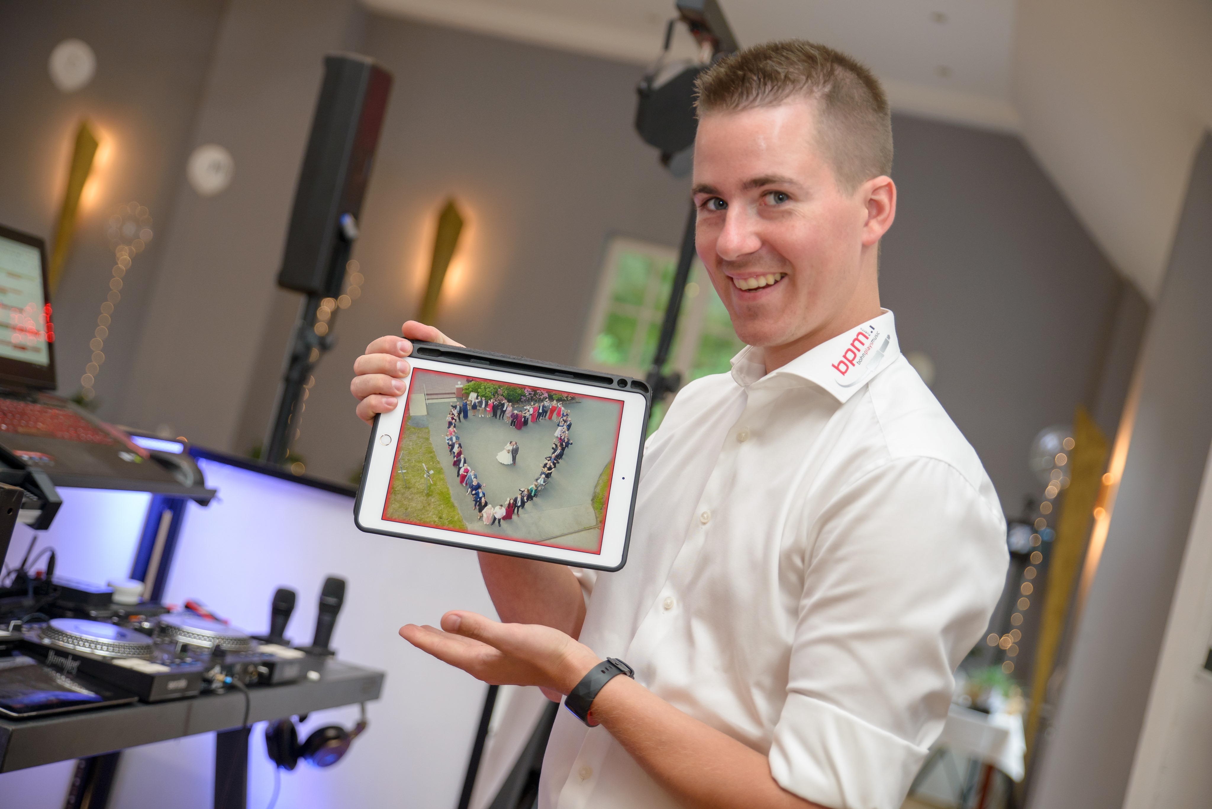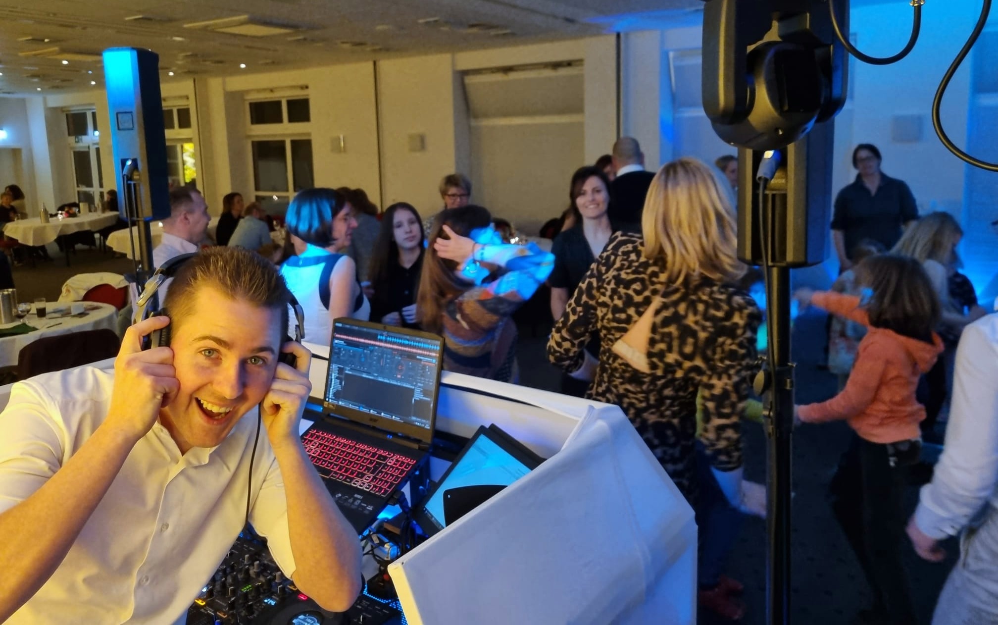 mit dem DJ-Service, inklusive technischem Support für eine dreiköpfige Liveband. Dazu die Fotobox & ein interaktives Online-Voting